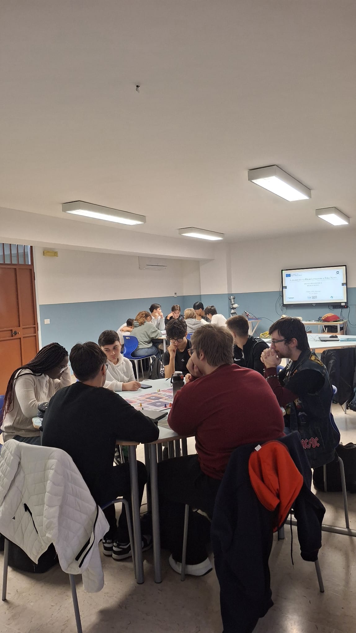 During the session, facilitators introduced students to the mechanisms behind the spread of fake news, opening a discussion on the threats these dynamics pose to democracy. The morning continued with interactive activities, including a quiz focused on recognising manipulated content and images generated by Artificial Intelligence, which sparked strong interest and engagement.